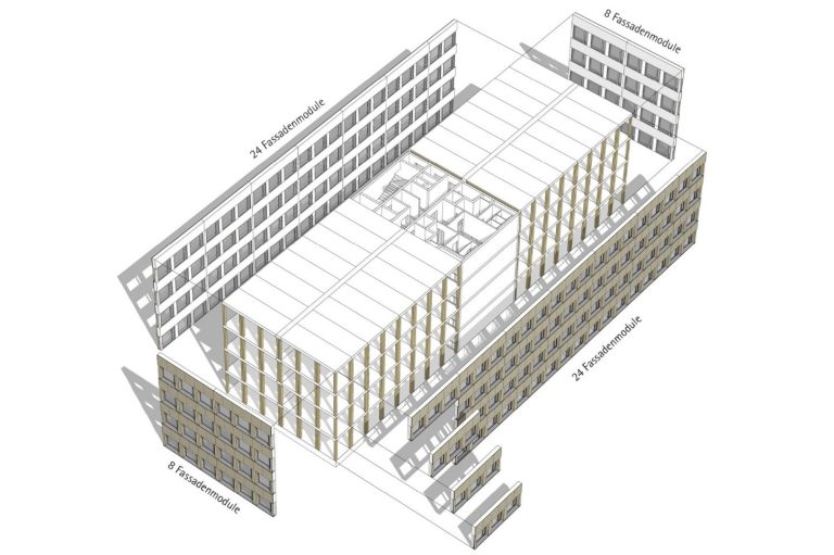 Modularität & Digitalisierung: Das System basiert auf einem festen Raster (meist BIM-geplant), das eine flexible Raumgestaltung und einfache Erweiterungen ermöglicht.